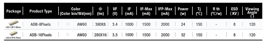 ADB 8 Pixel : LES:1.06*1.06mm